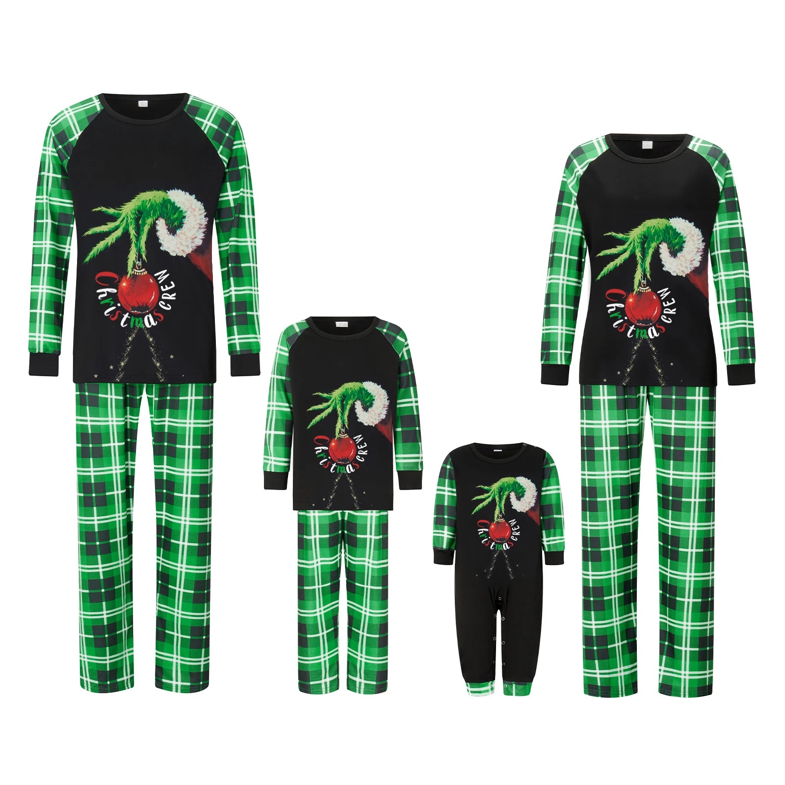 Combhasaki Family Matching Christmas Pajamas Set Christmas Ball & Plaid Print Holiday Pajamas Sleep Loungewear Dad Mom Kids PJs