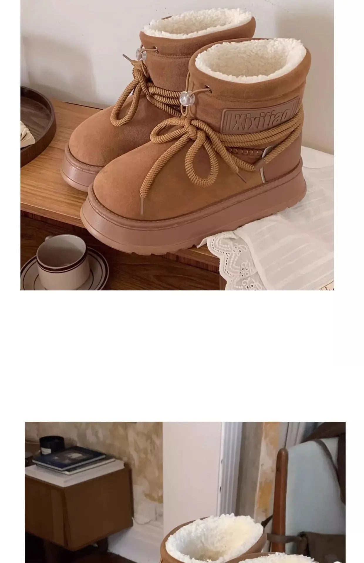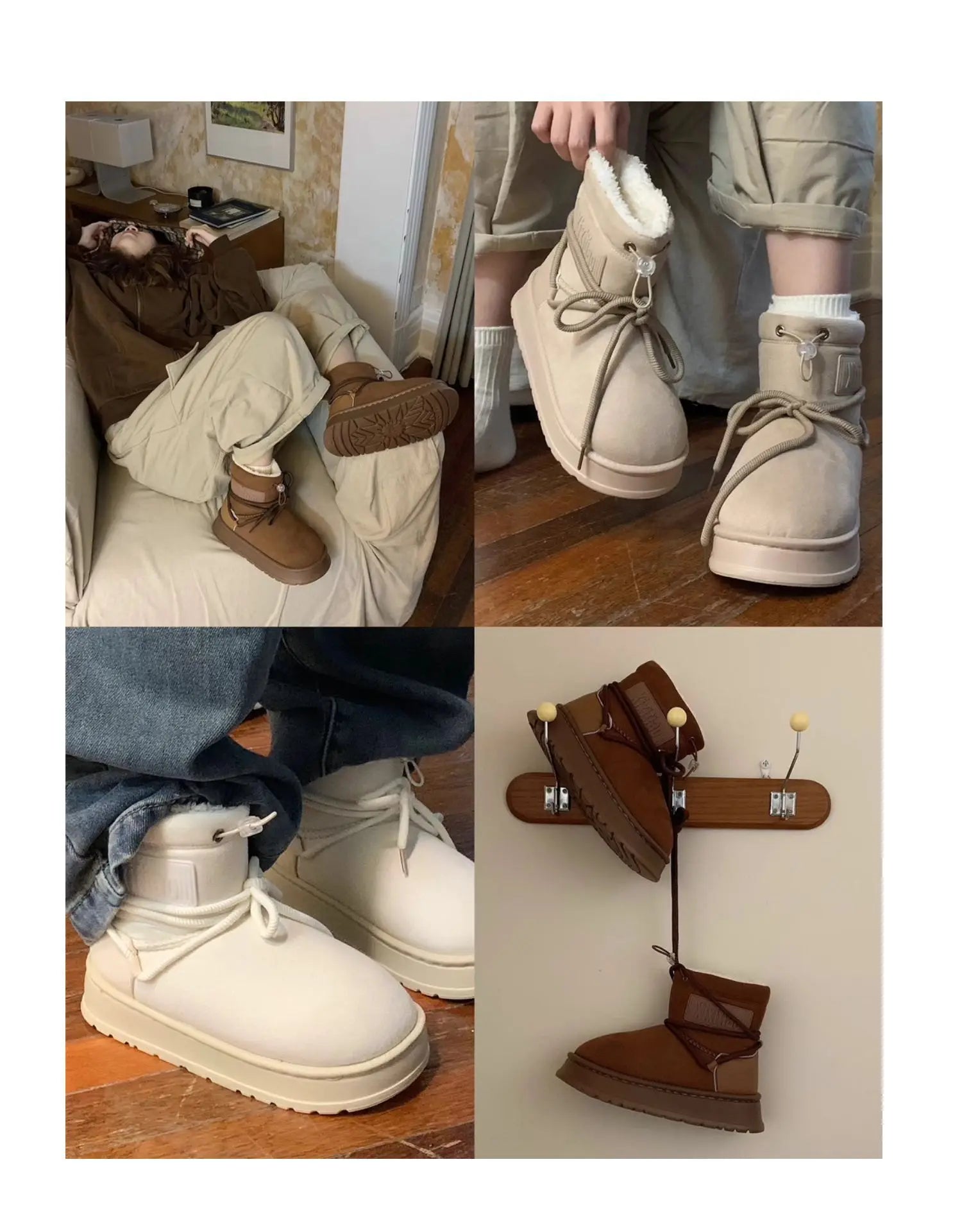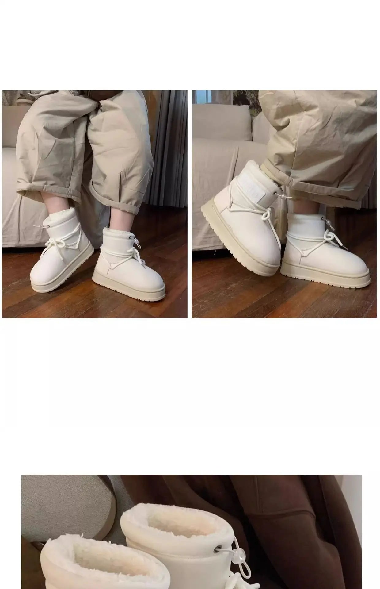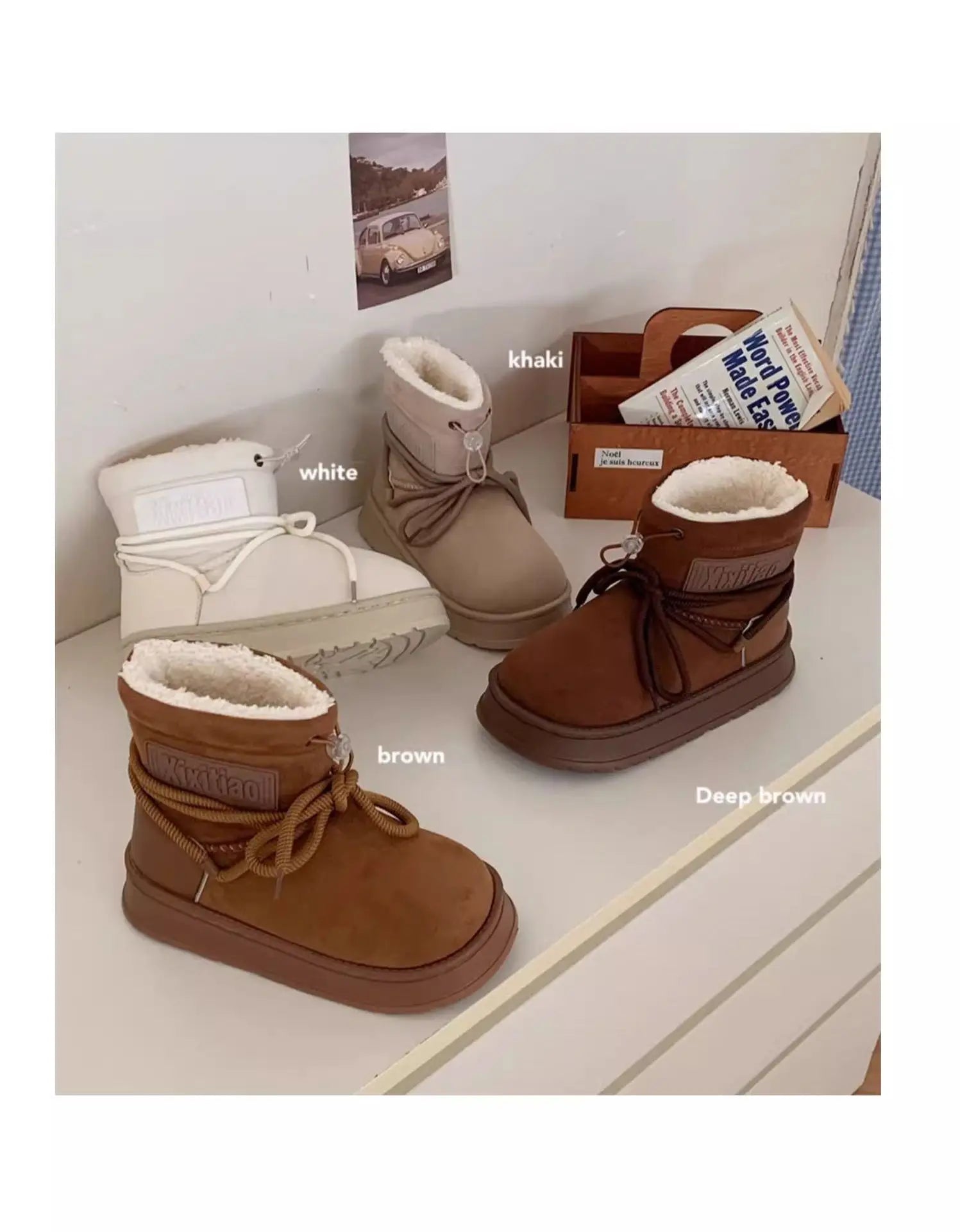 Winter Outdoor Women Ankle Snow Boots Ladies Plush Warm Shoes Classic Ultra Platform Cow Suede Furry Hook & Loop Flat Booties